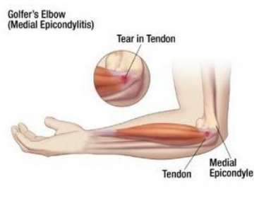 Golfer’s elbow, or medial epicondylitis, is a condition characterized by pain and inflammation in the tendons connecting the forearm to the elbow, specifically around the bony bump on the inner elbow, potentially radiating into the forearm. This condition arises from overusing forearm muscles responsible for gripping, arm rotation, and wrist flexion. Repetitive actions like flexing,
